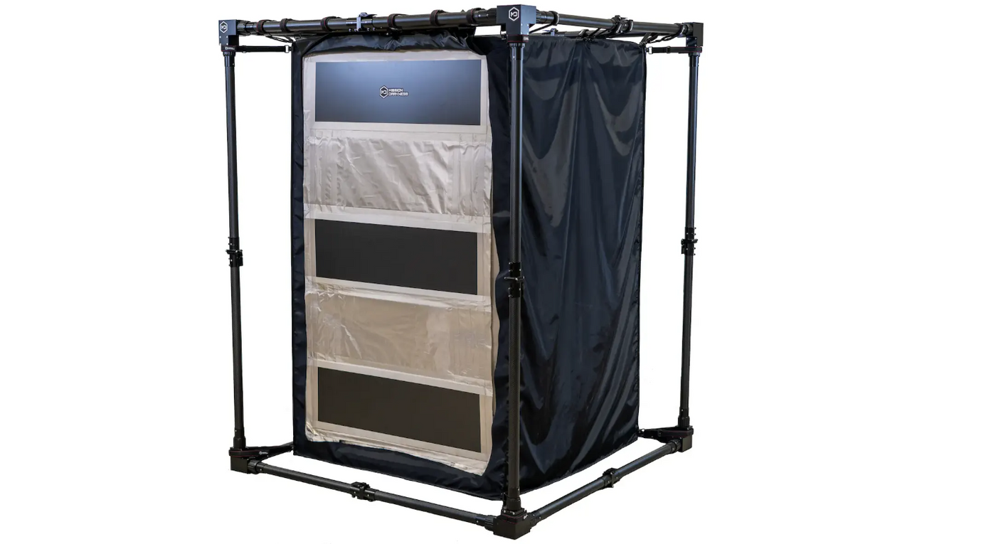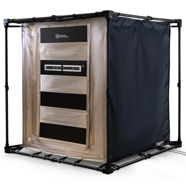Mission Darkness CYBERCYLENT™ Faraday Tent er en avansert løsning for å skape et bærbart, RF-skjermet miljø, ideelt for digital kriminalteknikk og andre sensitive operasjoner. Teltet er laget av TitanRF™ Faraday Fabric og Tape, som gir eksepsjonell skjerming mot signaler som WiFi, 5G, Bluetooth og GPS. Det lette designet har en karbonfiber-ramme med aluminiumskoblinger, som er både stabil og enkel å transportere.