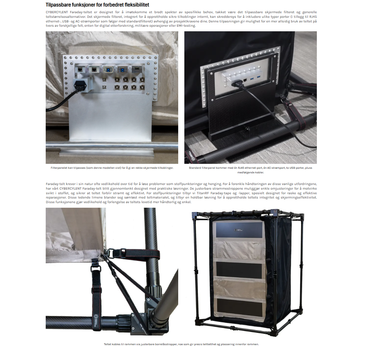 - Militærgrad lettvekts portabelt Faraday-rom, spesielt designet for RF-isolasjon.