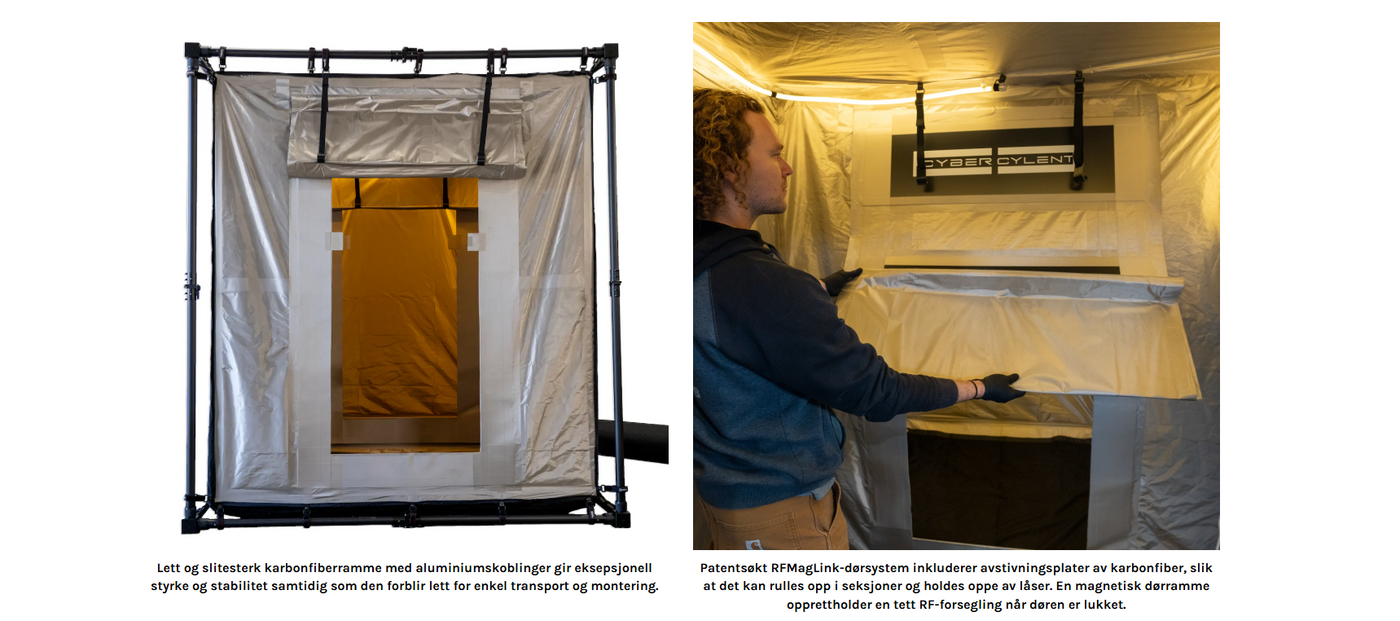 CYPHERCYLENT Faraday-teltet med sluse er en allsidig løsning for ulike sektorer: