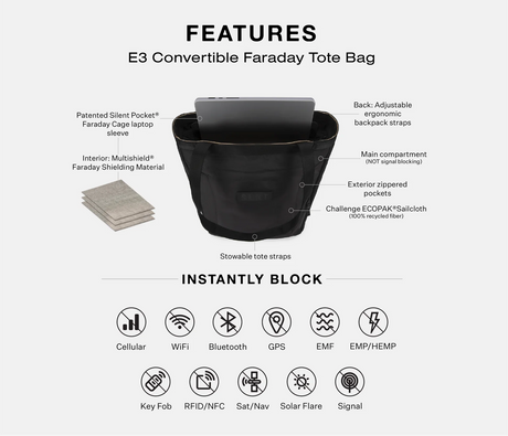 - SLNT - SLNT® - E3 Convertible Faraday Totebag - skulderveske 3.490,00 krEkskl. mva: 2.792,00 krEnhetspris /Utilgjengelig