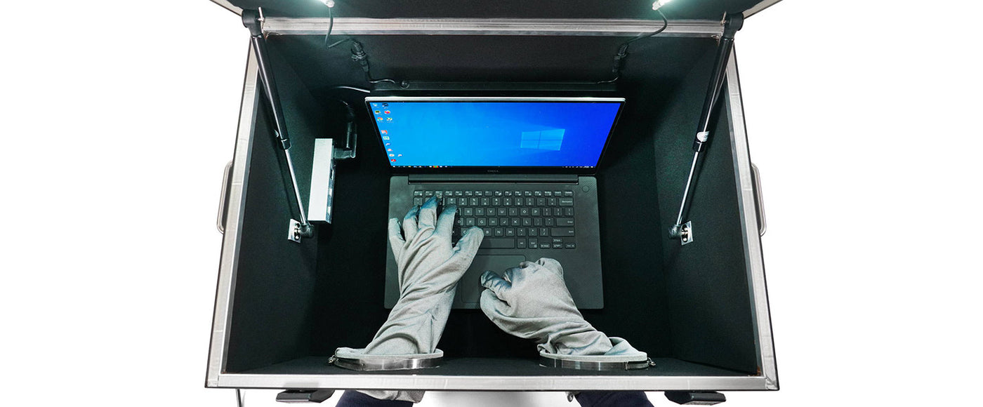 Mission Darkness™ BlockBox Lab XL tilbyr maksimal radiobølge (RF)-skjerming og praktisk tilgang for etterforskning av elektroniske enheter i kriminaltekniske undersøkelser. Det robuste analysekabinettet er spesielt designet for å undersøke enheter som mobiltelefoner, nettbrett, bærbare datamaskiner og lignende elektronikk, samtidig som de holdes fullstendig skjermet fra RF-signaler. De ekstra store innvendige dimensjonene gir operatører komfortabel plass til å analysere enheter, samt å overføre dem mellom faradayposer inne i det skjermede kammeret.