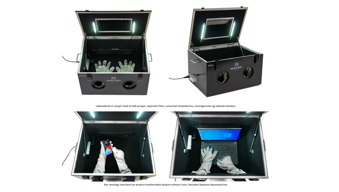 Kriminalteknisk analysekabinett for bruk og datautvinning under RF-skjerming
